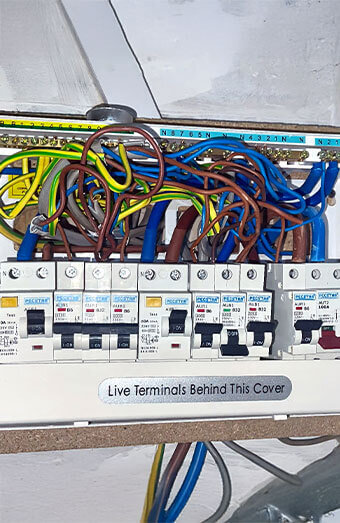 Complete replacement of outdated fuse boxes with modern switchboards featuring circuit breakers and RCDs, improving safety and ensuring compliance with current standards.